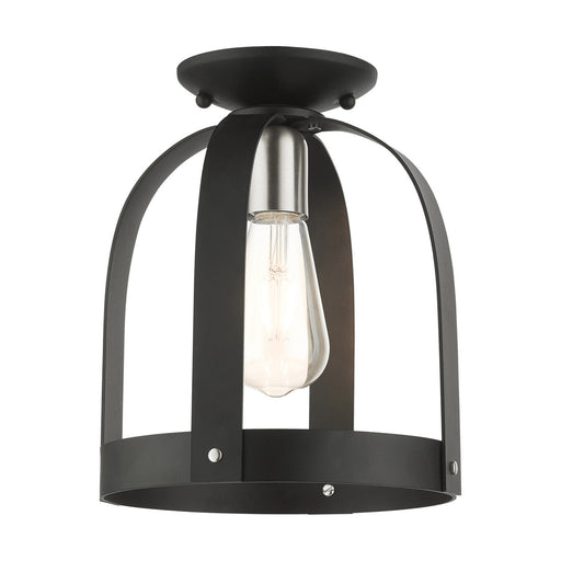 Livex Lighting 49641-14 One Light Semi Flush Mount, Textured Black w/ Brushed Nickels