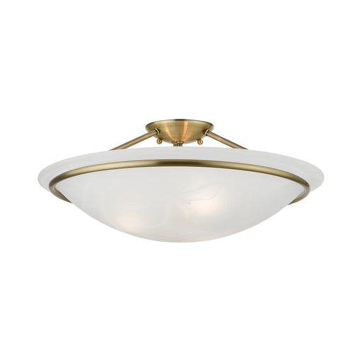 Livex Lighting 49430-01 Three Light Semi-Flush Mount, Antique Brass