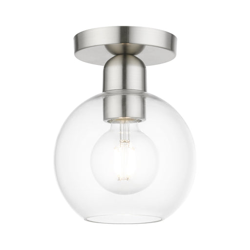 Bring a refined lighting style to your interior with this downtown collection single light semi flush. Shown in a brushed nickel finish with clear ...