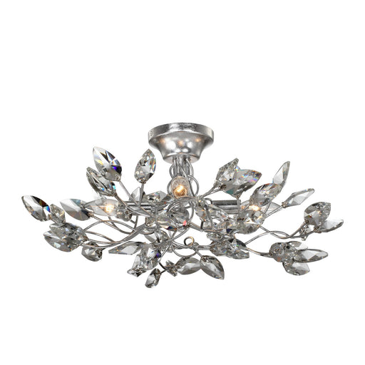 4-Light 22" Organic Semi-Flush Mount with Branch Like Arms Finished with Clear Almond Shaped Leaf Style Crystals and Silver Leaf Metal Finish.Detai...