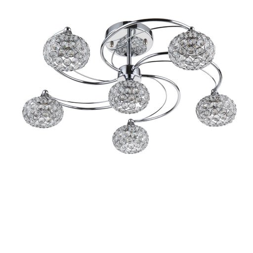 6-Light 23" Swirling Semi-Flush Mount with Clear Crystal Faceted Crystal Disc Globes and Polished Chrome Metal Frame.Details:Product Type: Glass Do...