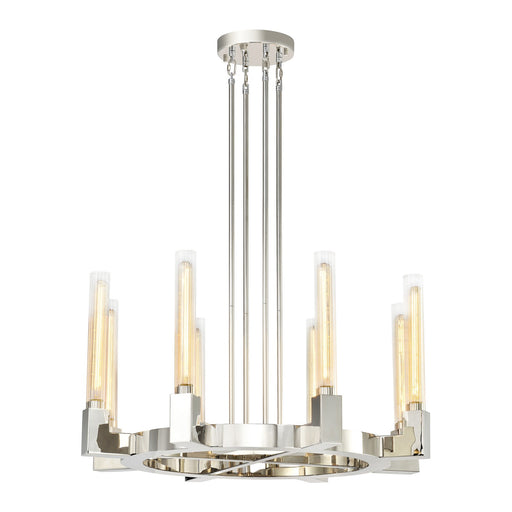 8-Light 32" Wheel Styled Chandelier with Clear Fluted Cylindrical Glass Shades Settled on a Round Polished Nickel Metal Frame.Details:Product Type:...