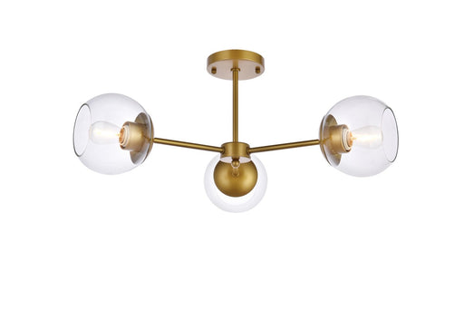 Elegant Lighting LD648F26BR Three Light Flush Mount, brass