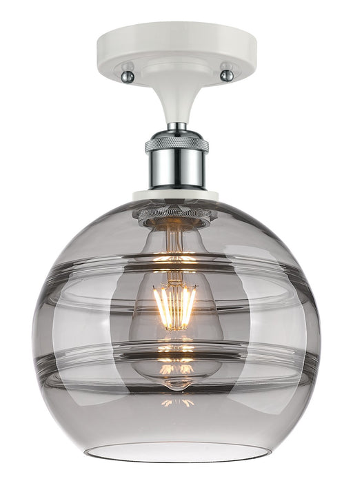 Rochester - 1 Light - 10 inch - White Polished Chrome - Light Smoke Shade - Semi-Flush MountDetails:Product Type: Glass DownFinish: White Polished ...