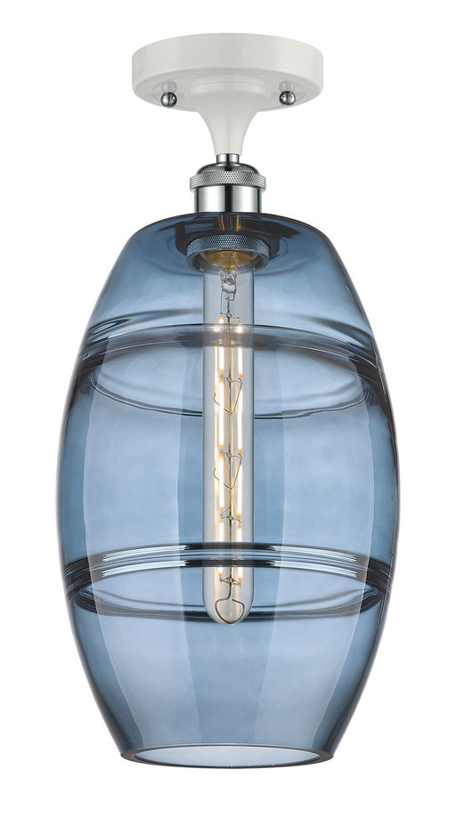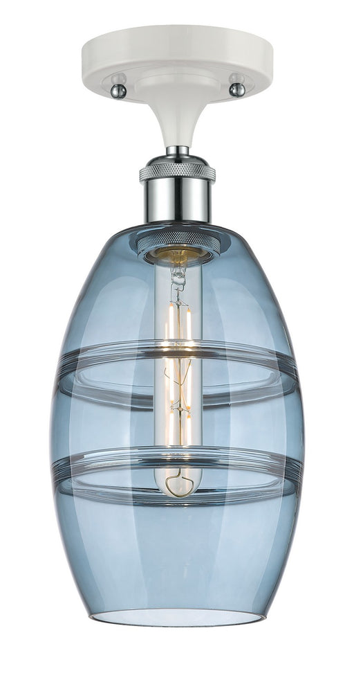 Vaz - 1 Light - 6 inch - White Polished Chrome - Blue Shade - Semi-Flush MountDetails:Product Type: Glass DownFinish: White Polished ChromeShade: B...