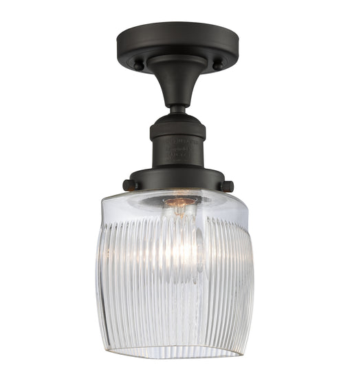Colton - 1 Light - 6 inch - Oil Rubbed Bronze - Clear Halophane Shade - Semi-Flush MountDetails:Product Type: Glass DownFinish: Oil Rubbed BronzeSh...