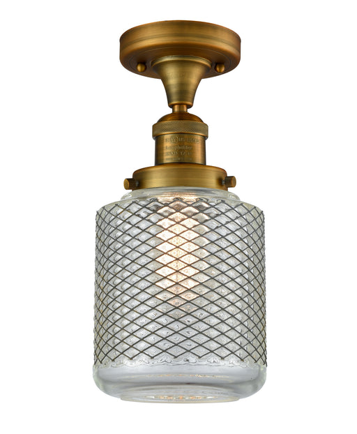 Stanton - 1 Light - 6 inch - Brushed Brass - Clear Wire Mesh Shade - Semi-Flush MountDetails:Product Type: Glass DownFinish: Brushed BrassShade: Cl...