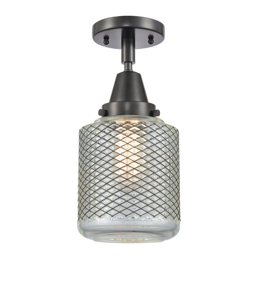 Stanton - 1 Light - 6 inch - Matte Black - Clear Wire Mesh Shade - Flush MountDetails:Product Type: Glass DownFinish: Matte BlackShade: Clear Wire ...