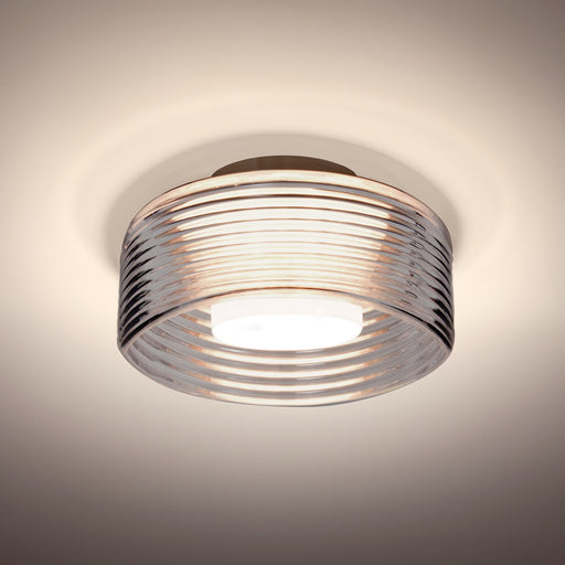 The Belu ceiling features a ribbed drum glass shade that adds a touch of elegance and sophistication to any space. The glass shade has horizontal r...