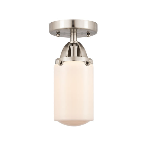 Dover - 1 Light - 5 inch - Brushed Satin Nickel - Matte White Shade - Semi-Flush MountDetails:Product Type: Glass DownFinish: Brushed Satin NickelS...