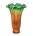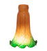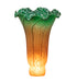 This mottled Emerald tipped Amber Lily shade, mouth blown of fine art glass, recreates Louis Comfort Tiffany's famous Favrile design from the early 1900's.