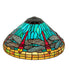This version of Tiffany Studio's most beloved dragonfly design is modeled after the original stained glass dragonfly. Diving Scarlet Red dragonflies with jeweled eyes and delicate metal filigree wings circle over hand cut and copper foiled pieces of Sky Blue art glass. Sparkling Amber Granite Glass and Brown/Green Glass bands circle the bottom of the shade. The art glass shade is created using the famous Meyda Tiffany copperfoil construction. Ideal for embracing a base to create a gorgeous table/floor lamp or hardware to build a beautiful ceiling fixture. Each shade is a unique work of art with color variations based on natural ingredients inherent in the glass. Contact us if color matching is critical when ordering multiple items.