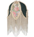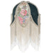 Natural forms and fabric come to light with this beautiful fabric shade. Soft Ivory Pink and Blue Tulips are featured on this damask-styled fabric edged in long strands of Clear Glass Beaded Fringe. Each colorful fabric floral petal is contrasted with Hunter Green panels. This shade pairs well with a Vanity Tray base to create a 19-inch High Fabric Tulip Lighted Vanity Tray Lamp, model 267782, as well as ceiling pendants. The Tulip W/Fringe Fabric Shade is included in our American-designed, handcrafted Fabric & Fringe Collection.