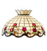 Grace your home or commercial setting with the elegant Roseborder shade. This exquisitely crowned shade features a gridwork of Beige art glass adorned with a Plum Waterglass border of swirling ribbons and perfect Red Rosebuds with Green Leaf accents. The art glass shade is made of hand cut glass using the famous Meyda Tiffany copperfoil construction process. The lovely shade can be paired with a base to create a stunning table or floor lamp or matched with hardware to create a beautiful ceiling fixture. Each shade is a unique work of art with color variations based on natural ingredients inherent in the glass. Contact us if color matching is critical when ordering multiple items.