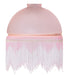 A charming nostalgic art glass lighting shade that doubles as a decorative accent for nearly any room. This Roussillon features a stunning Pink Etched Glass shade color coordinated with delicate Pink and Ivory glass beaded fringe. It is ideal for pairing with a base to create a mini lamp or matching with hardware to build a wall sconce or mini pendant. Perfect for placement in corridors, dining areas, and living spaces in fine Victorian homes from Cape May, New Jersey, to Old Louisville, Kentucky, to the Vine neighborhood in Kalamazoo, Michigan. The Roussillon Etched Shade is featured in our American-designed, handcrafted Boudoir Lighting Collection. Each shade is a unique work of art with color variations based on natural ingredients inherent in the glass.