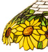 A field of sparkling Country Brown eyed, Farm Yellow sunflowers growing on stalks of summer Bronzed Green leaves and edge this White brickwork patterned shade. Bring nature into your home with this stained glass shade which was created using the famous Meyda Tiffany copperfoil construction technique. Pair it with a base to create a stunning table or floor lamp, or use hardware to build a stunning ceiling fixture. The Wild Sunflower Shade is featured in our American designed, handcrafted Stained Glass Lighting Collection. Each shade is a unique work of art with color variations based on natural ingredients inherent in the glass. Contact us if color matching is critical when ordering multiple items.
