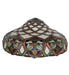 A luxurious Art Nouveau stained glass shade is highlighted with Sunburst jewels that accent Sunset Orange, Amber, Leafy Green, and Blue/Green patterns, with borders featuring swirled Blue/Green/Purple colored pieces of glass. The stained glass shade is handcrafted using Meyda Tiffany's world-famous copperfoil construction process. This magnificent Tiffany-styled art glass shade is inspired by antique lighting from West Hollywood, Florida, to West Hollywood, California. The shade can be used for illuminating tables, credenzas, and desks in homes, banks, and restaurants. The Franco Shade is included in our American-designed, handcrafted Tiffany Stained Glass Collection. Each shade is a unique work of art with color variations based on natural ingredients inherent in the glass.