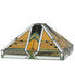 Offering a unique and handsome Mission design, Abilene uses colorful arrowheads of Honey, Woodsy Green, and Bark Brown on a multi-designed motif of linear locks of Green, Bark Brown, and Amber. The handcrafted stained glass shade, which features a Mission design that interprets organic objects into geometric forms, is framed in White with Woodsy Green glass and was created using the famous Meyda Tiffany copperfoil construction process. Ideal for placement in Mission-styled homes from San Antonio, Texas, to West Adams Terrace and Santa Barbara in California. It pairs well with a base to create a table or floor lamp, or matches with hardware to build a ceiling fixture. The Abilene Shade is included in our American-designed, handcrafted Mission Lighting Collection.