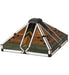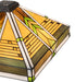 Offering a unique and handsome Mission design, Abilene uses colorful arrowheads of Honey, Woodsy Green, and Bark Brown on a multi-designed motif of linear locks of Green, Bark Brown, and Amber. The handcrafted stained glass shade, which features a Mission design that interprets organic objects into geometric forms, is framed in White with Woodsy Green glass and was created using the famous Meyda Tiffany copperfoil construction process. Ideal for placement in Mission-styled homes from San Antonio, Texas, to West Adams Terrace and Santa Barbara in California. It pairs well with a base to create a table or floor lamp or matches with hardware to build a ceiling fixture. The Abilene Shade is included in our American-designed, handcrafted Mission Lighting Collection.