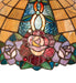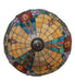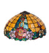 Brilliant Red with Lavender Roses is flanked by Clear, Red, and Green glass jewels and Violet/Mauve flowers surrounded by Green and Jade leaves. Honey-colored loops, linked by Blue jewels on Blue/Green Rippled glass on a background featuring Honey Beige with streaks of Blue Ripple glass. It pairs well with a base to create a table or floor lamp or is matched with hardware to build a ceiling fixture. The Rose Vine Shade is included in our American-designed, handcrafted Stained Glass Lighting Collection.