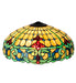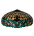 Flourishes of Merlot colored stained glass accent the Emerald Green scrolls and Sea Blue accents on warm Ivory in this Duffner & Kimberly reproduction shade. The Tiffany style handcrafted shade is created with the famous Meyda Tiffany copperfoil construction. Match with a base to create a stunning table or floor lamp. Pair it with hardware to build a beautiful ceiling fixture. Each shade is a unique work of art with color variations based on natural ingredients inherent in the glass. Contact us if color matching is critical when ordering multiple items.
