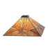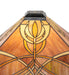 This Meyda Tiffany original is inspired by the art and architecture of Charles Rennie Mackintosh and the Glasgow school of art. Amber-Mauve and Gold stained glass make up the intricate patterned shade.