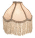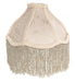 An alluring and nostalgic-styled lighting shade. A warm Ivory damask fabric shade is edged in long Ivory Glass beaded trim. This Victorian-inspired, intricately detailed shade can be paired with a base to create a mini table lamp or matched with hardware to build a mini ceiling pendant. The lighting design is inspired by beautiful fabrics and fashion from New York, to Chicago, Illinois, and Los Angeles, California. The Fabric & Fringe Recurve Ivory Shade is featured in our American-designed, handcrafted Fabric & Fringe Collection.