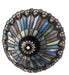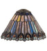 As distinctive as the beautiful Peacock fanning feathers in the wild, no two shades will ever be the same as their individuality can be as remarkably unique as their personality. This Jeweled Peacock artistic creation utilizes art glass background combinations including Beige, Yellow Pink, Golden Green, Ivory, Bluish White, Turquoise Blue, Olive and Spring Green. The eye of the plumage design reveals Purple and Teal, accented with Purple colored jewels. Individual pieces of glass are hand cut and wrapped using the famous Meyda Tiffany copperfoil construction. Each shade is a unique work of art with color variations based on natural ingredients inherent in the glass.