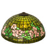 Add a touch of charm to any room with this beautiful Tiffany Dogwood reproduction style stained glass lamp with Spring green leaves and Petal Pink Dogwood Flowers on a Jade Green gridwork background. This stunning shade is created with the famous Meyda Tiffany copperfoil construction technique. Ideal for pairing with a base to create a charming table or floor lamp, or building a stunning ceiling or wall fixture with the appropriate hardware. The Tiffany Banded Dogwood Shade is featured in our American designed, handcrafted Tiffany Reproduction Collection. Each shade is a unique work of art with color variations based on natural ingredients inherent in the glass. Contact us if color matching is critical when ordering multiple items.