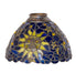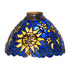 In a Celestial Blue glass sky, a Solar Yellow sun watches over the moon and the stars. Sparkling Citrine-like jewels accent the handcrafted stained glass shade using the famous Meyda Tiffany copperfoil construction technique. The shade is enhanced with an elegant, cast metal base that is hand-finished in a warm Mahogany Bronze. This shade can be used with a base to create a table lamp, and with hardware on a pendant, chandelier, or wall sconce. The Sun, Moon & Stars Shade is included in our American-designed, handcrafted Stained Glass Lighting Collection. Each shade is a unique work of art with color variations based on natural ingredients inherent in the glass.