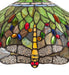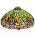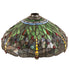This beloved lighting design is modeled after the original hanging-head dragonfly from Tiffany Studios. Soaring Blue Dragonflies with glowing jeweled eyes and delicate metal filigree wings circle over hand-cut and hand-soldered pieces of Pond Green glass representing rippling water. This lovely shade is created using the famous Meyda Tiffany copperfoil construction technique. This shade pairs well with a torchiere base in model 272748, the Tiffany Hanginghead Dragonfly Torchiere. The Tiffany Hanginghead Dragonfly Shade is included in our American-designed, handcrafted Tiffany Reproduction Collection.