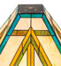 In the tradition of the Prairie School, organic objects were interpreted into geometric forms. Meyda Tiffany uses colorful interlocking blocks and diagonal shapes of Willow Green, Sunrise Amber and Teal glass on a Beige Cream background. The stained glass shade is created using the famous Meyda Tiffany copperfoil construction and can be paired with an architectural-styled base. The Moab Shade is featured in our American-designed, handcrafted Mission Lighting Collection. Custom made. Call for pricing and lead time. This shade is featured on a table lamp at Colusa Casino Resort in Colusa, California.