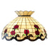 Grace your home with the elegant Roseborder shade. This exquisitely crowned shade features a gridwork of Beige art glass adorned with a Bark Brown border of swirling ribbons and perfect Red Rosebuds with Green Leaf accents. The art glass shade is made of hand cut glass using the famous Meyda Tiffany copperfoil construction process. The lovely shade can be paired with a base to create a stunning table or floor lamp or matched with hardware to create a beautiful ceiling fixture. Each shade is a unique work of art with color variations based on natural ingredients inherent in the glass. Contact us if color matching is critical when ordering multiple items.