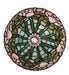 A wreath of full-blooming Pink Cabbage Roses circles this beautiful stained glass shade in a design inspired by the Louis Comfort Tiffany studio. Bronzed Green leaves and Teal Green stems form a pattern against an Opal sky. The shade is created using the famous Meyda Tiffany copperfoil construction. This design is reminiscent of rose gardens in New York City, the White House in Washington, DC., and Thomasville, Georgia. The 8-inch shade will make a lovely accent lamp, mini pendant, or wall sconce. The Tiffany Cabbage Rose Shade is included in our American-designed, handcrafted Tiffany Reproduction Collection.