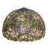 Nature abounds in this designer-styled stained glass shade. Glistening Red Glass Berries and clusters of Violets with Woodland Green leaves complement the delicate Ivory Trillium while Amber vines twist and turn through a background of Sky Blue and Clear Seeded glass. Clear Glass jewels glisten throughout the shade like the first dew drops of the day. This exquisite variegated shade is created with nearly 3,000 pieces of hand-cut stained glass using the famous Meyda Tiffany copperfoil construction process. The shade pairs well with a base to create a stunning lamp or is matched with hardware to build a beautiful ceiling fixture. The Trillium & Violet Shade is included in our American-designed, handcrafted Stained Glass Lighting Collection. Each shade is a unique work of art with color variations based on natural ingredients inherent in the glass. Please contact us if color matching is critical when ordering multiple items.