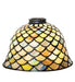 A Louis Comfort Tiffany studio classic... The renowned Fishscale design features a variegated Tortoiseshell of Emerald, Sapphire, Mauve, and Beige colored art glass, evoking a unique dimensional and textured look in a rainbow of brilliant hues. This exquisite art glass shade is created using the famous Meyda Tiffany copperfoil construction process and enhanced with a Mahogany Bronze finish. The lighting design is inspired by Rainbow Trout and other colorful fish found in Northwest Montana, Eastern Idaho, and Baja, California. The shade can be paired with hardware to build a ceiling pendant or wall sconce. See model 29645 shade to create a Mini Tiffany lamp. The Tiffany Fishscale Shade is included in our American-designed, handcrafted Tiffany Reproduction Lighting Collection. Each shade is a unique work of art with color variations based on natural ingredients inherent in the glass.