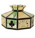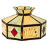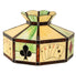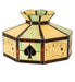 Play your cards right with this winning Poker hand, a Meyda original stained glass lighting design. The high cards are etched and inlay painted on Bidding Beige glass while suit symbols of Black and Red float on a Currency Green sky. The art glass shade is accented with Bankroll Brown granite glass bands. It pairs well with a table lamp such as 252404 and floor lamp 252397, or matches with hardware to create a ceiling pendant 81305 or wall fixture. The Poker Face Shade is featured in our American designed, handcrafted Stained Glass Lighting Collection. Each shade is a unique work of art with color variations based on natural ingredients inherent in the glass. Contact us if color matching is critical when ordering multiple items.