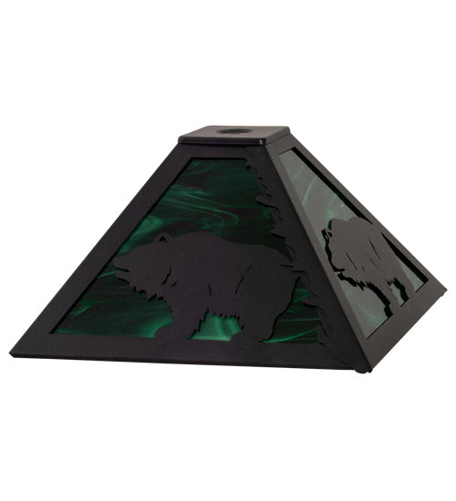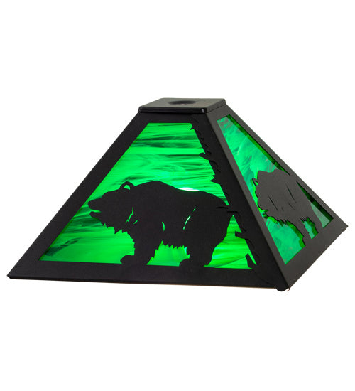 Bring the great outdoors in with this striking shade featuring a majestic Grizzly Bear. Beautiful ambient light is evoked through the Emerald Green...
