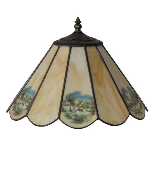 Inspired by the Gothic architecture of medieval Europe... The Castle Crown Shade is created with Amber blown-glass. Decorative accents are finished...