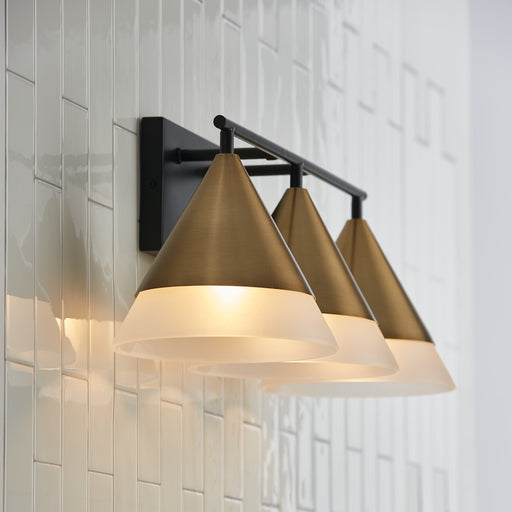 Create striking elegance in any powder room with the Avant 3-Light Vanity. The pointed Aged Brass metal shades widen to slightly translucent Froste...