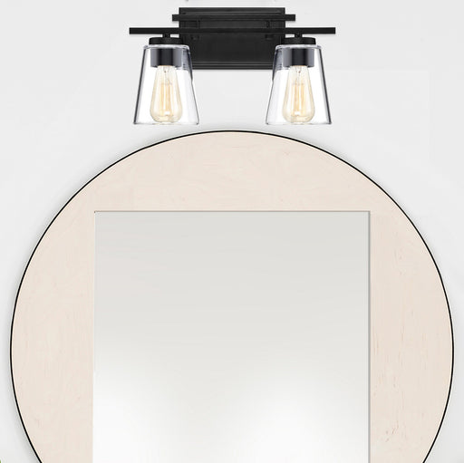 View full detailsQuorum 5094-2-269 Two Light Vanity, Textured Black w/ Clear/Seeded