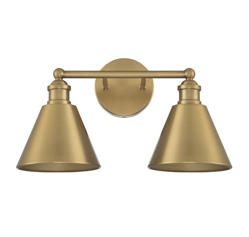 Meridian M80074NB Two Light Bathroom Vanity, Natural Brass