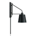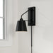 Spotlight distinct style with the Alden Sconce. The Matte Black finish with White interior delivers a sleek contrast, and the crisp, tapered metal shade swings from side to side and includes a dimmer switch bringing modern task lighting where you need it most. This versatile fixture includes a 12 cord cover and plug-in option.