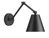 With a bold matte black finish, this one-light wall sconce makes a statement of studio inspiration in a transitional space. Steel construction is true to its functional aesthetic, making the most of a wall-mounted sconce offering adjustable positioning of a cone shade. This fixture makes an excellent light for reading and task-mastering, as well as mood lighting ideal for a low-key setting. Install through hard-wiring or install cord-and-plug mounting to allow movement from space to space.