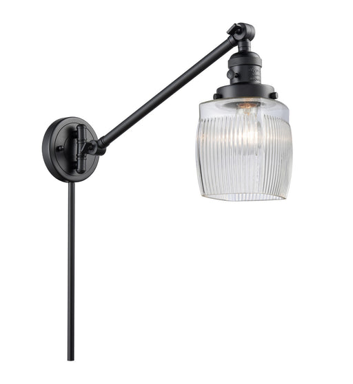 Colton - 1 Light - 8 inch - Matte Black - Clear Halophane Shade - Swing ArmDetails:Product Type: Swing Arm-WallFinish: Matte BlackShade: Thick Clea...