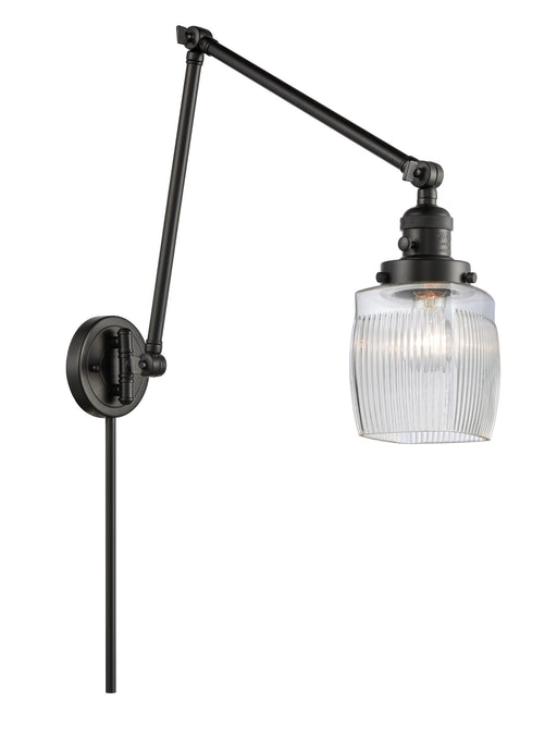 Colton - 1 Light - 8 inch - Matte Black - Clear Halophane Shade - Swing ArmDetails:Product Type: Swing Arm-WallFinish: Matte BlackShade: Thick Clea...