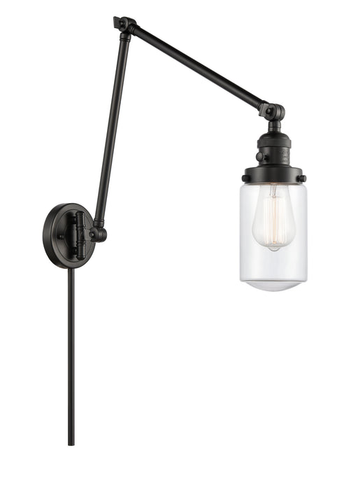 Dover - 1 Light - 5 inch - Matte Black - Clear Shade - Swing ArmDetails:Product Type: Swing Arm-WallFinish: Matte BlackShade: Clear DoverRooms: Bat...