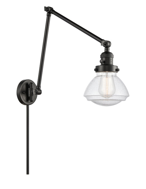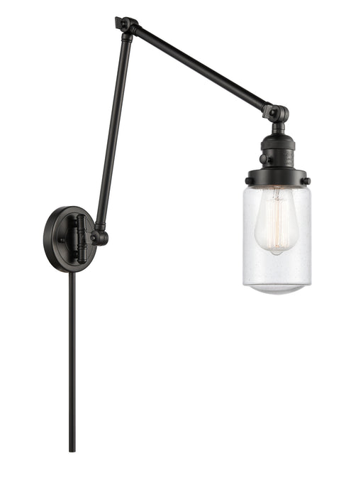 Dover - 1 Light - 5 inch - Matte Black - Seedy Shade - Swing ArmDetails:Product Type: Swing Arm-WallFinish: Matte BlackShade: Seedy DoverRooms: Bat...