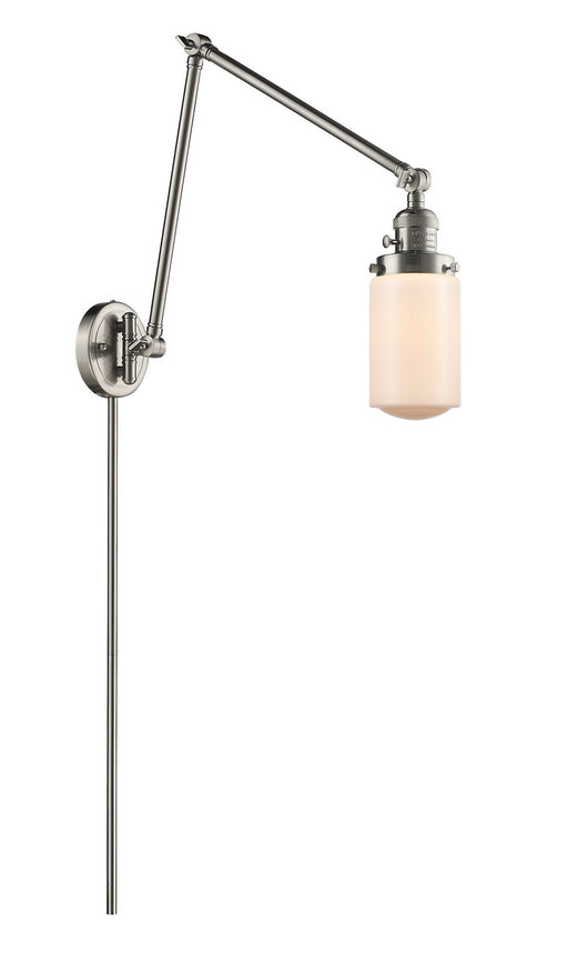 Dover - 1 Light - 5 inch - Brushed Satin Nickel - Matte White Shade - Swing ArmDetails:Product Type: Swing Arm-WallFinish: Brushed Satin NickelShad...