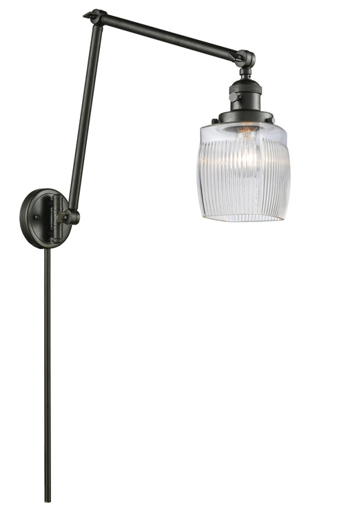 Colton - 1 Light - 8 inch - Oil Rubbed Bronze - Clear Halophane Shade - Swing ArmDetails:Product Type: Swing Arm-WallFinish: Oil Rubbed BronzeShade...